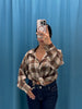 Il dettaglio del nodo frontale, già annodato, aggiunge un tocco moderno e femminile, ma può essere sciolto facilmente per indossare la camicia in modo classico, lasciata morbida o infilata nei pantaloni