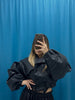 Bomber in pelle dal taglio moderno, si abbottona sul davanti per un look deciso e versatile.