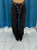 Pantalone in jeans grigio con cintura a cravatta, dal taglio moderno e versatile. Perfetto per look casual ma ricercati, con un tocco di stile unico.