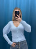 Delicato e femminile, questo maglioncino a scollo a V unisce morbidezza e dettagli raffinati. Le maniche a palloncino donano volume e movimento, mentre la parte inferiore delle braccia si restringe delicatamente per un effetto elegante e sagomato. Lo scollo a V è arricchito da una fila di bottoni decorativi che aggiunge un tocco chic e sofisticato, rendendo questo capo perfetto per look casual eleganti o outfit da ufficio con stile.