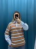 Polo donna dal design originale e contemporaneo, caratterizzato da un raffinato gioco di contrasti.Il corpo della polo presenta una lavorazione a righe, creando l’effetto visivo di un capo a mezze maniche. A completare il design, le maniche lunghe a tinta unita emergono come un elegante effetto layering, donando profondità e personalità al capo.La vestibilità è confortevole e moderna, perfetta per chi ama capi semplici ma con un dettaglio distintivo. Un maglione versatile, ideale per outfit casual chic e look urban dal gusto ricercato.