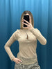 Il modello è arricchito da una fila di bottoni lungo il collo che aggiungono un dettaglio elegante e permettono di regolare l’apertura, rendendo la maglia versatile e facile da abbinare. Perfetta da indossare sia con look casual che con outfit più curati.